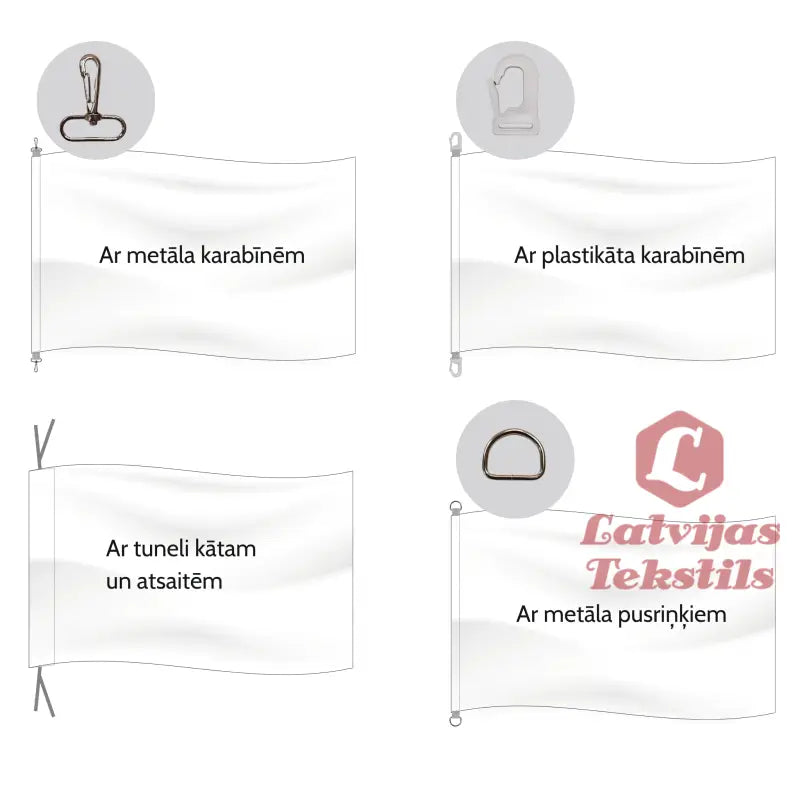 | Citi izmēri: | Ja vēlaties pasūtīt jebkura cita izmēra vai veida karogu, lūgums rakstīt uz e-pastu: pardosana@latvijastekstils.lv |