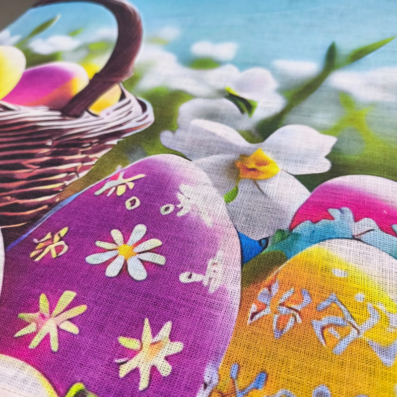 Lina dekors/dvielis izgatavots no augstas kvalitātes puslina vai lina auduma un apdrukāts ar videi draudzīgām pigmenta krāsām tiešās digitālās drukas tehnikā.